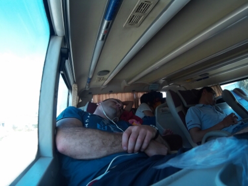 The bus from Dalat to Mui Ne was fairly miserable. Instead of riding on the already-too-small sleeper busses, we were on a regular shtutle bus. The bus ride was a windy 4 hours on windy dirt roads with the bus constantly shaking and random bumps almost knocking you out of your seat. Just when I decided that this was our worst bus ride we have had to go on, the driver stopped to pack in about 15 locals from some random village to ensure my knees had adequate contact with the seat in front of me.